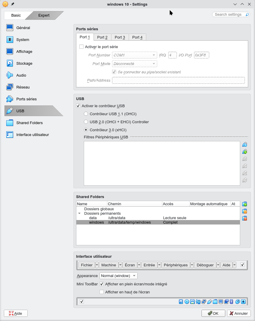 extensions à partir du menu Périphériques->Lecteurs