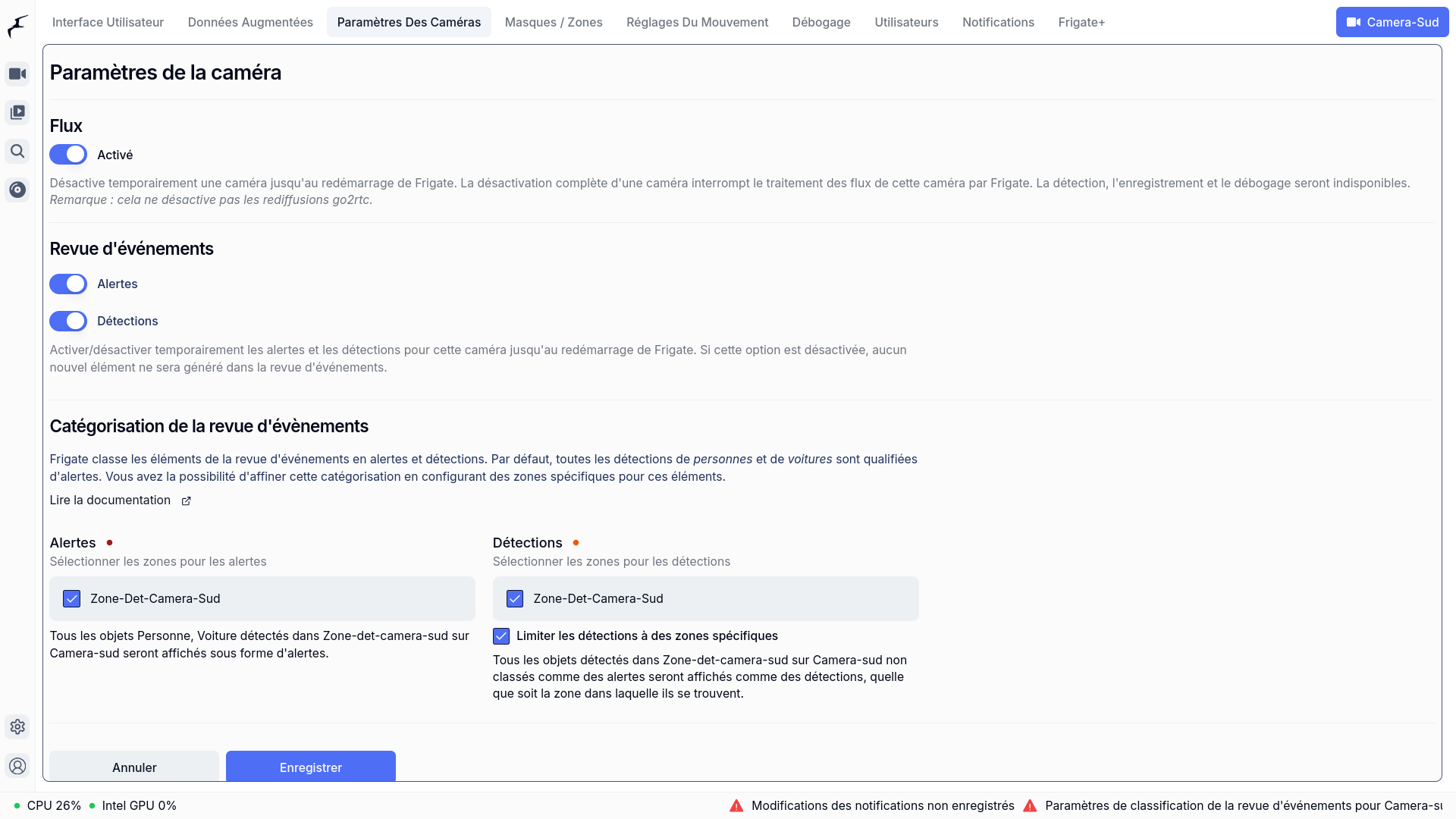 Before going any further, it is important to understand some basic concepts of how Frigate works. We talk about alerts and detections. Alerts are based on detections but are considered priority events to be reported, while detections are less significant events that do not warrant notification but are still recorded and visible in the event review (see the documentation in English here https://docs.frigate.video/configuration/review/ ).