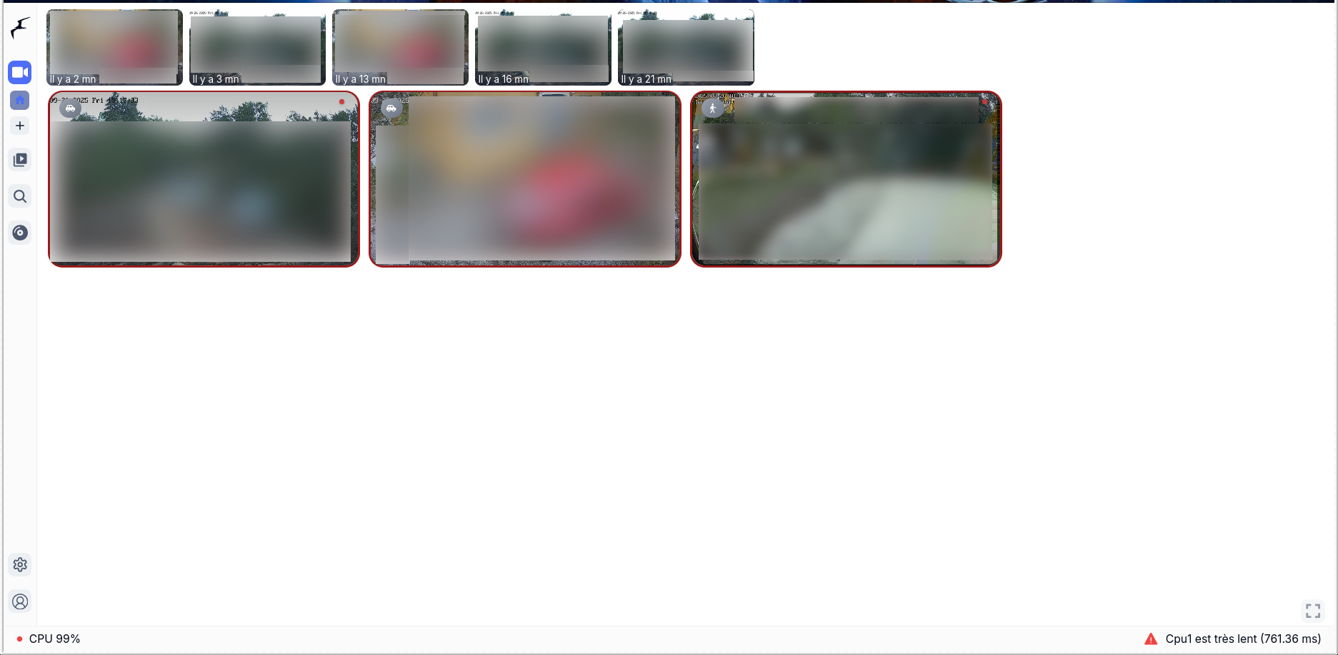 Now let's return to the main interface. We saw earlier that the main view links to the camera views; it is accessible by clicking on the icon representing a camera on the left.